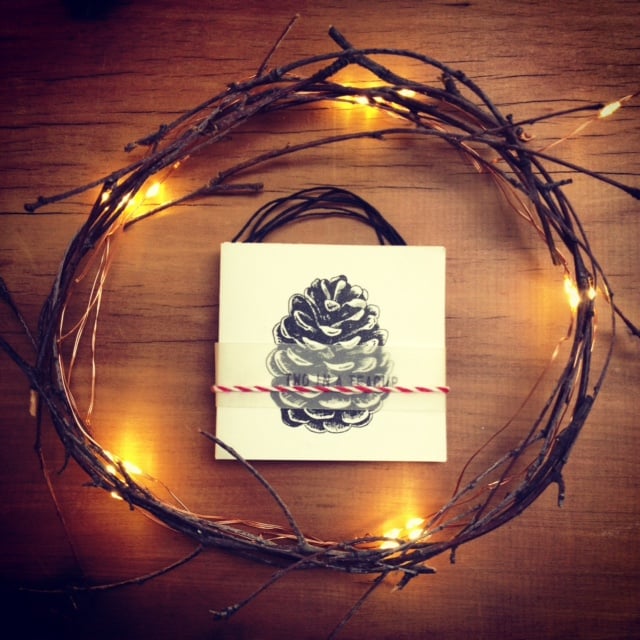 Small pinecone cards - set of 5 Blank inside measuring 7.5cm and 7cm. Can be hole punched on back if wishing to tie on to a present. Please indicate this option in comments box at checkout.
