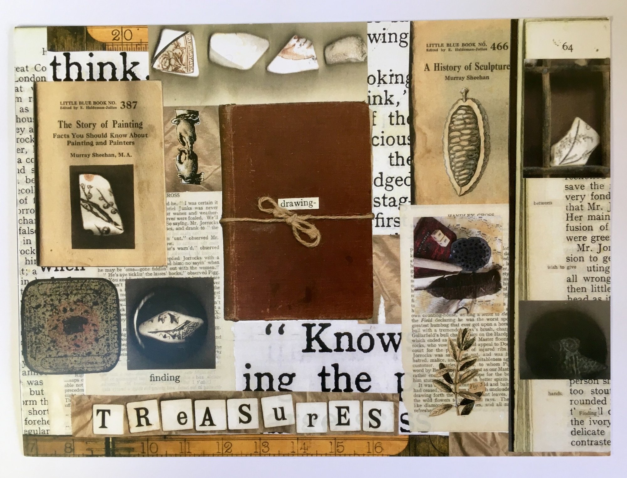 Large format postcards on heavy semigloss card stock are perfect for the collector and nature lover. The large format cards, ‘Journal of Ideas’ and ‘Nature Study’, are produced from original collages incorporating vintage imagery and texts. They make a unique card or image for lovers of ephemera and vintage wares.