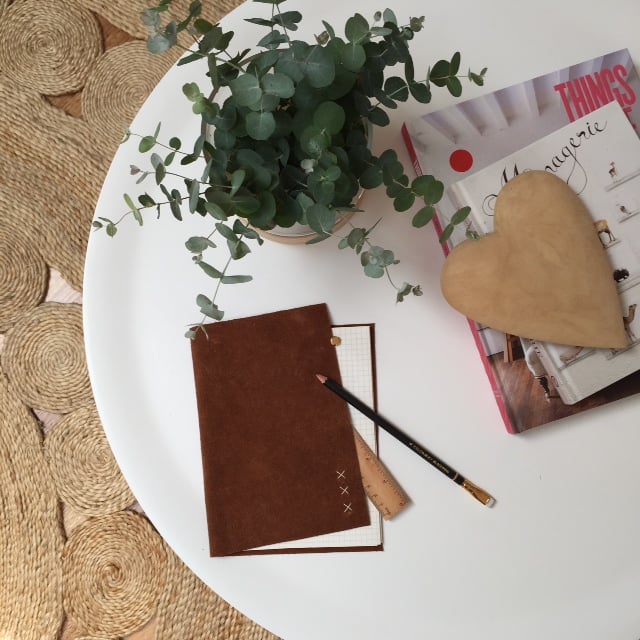 This stylish minimal 'Leather Bound Notepad' is hand made using soft cowhide for the cover, brass studs and quality checked paper. The set comes with a small wooden ruler and one extra paper refill. The studs are simple to unscrew so the leather cover can be refilled as often as needed. Soft and luxurious in suede leather makes writing notes a beautiful experience. The notepads are approximately A5 size and are made to order, so please allow a week before orders are ready to be posted. These are a limited edition.