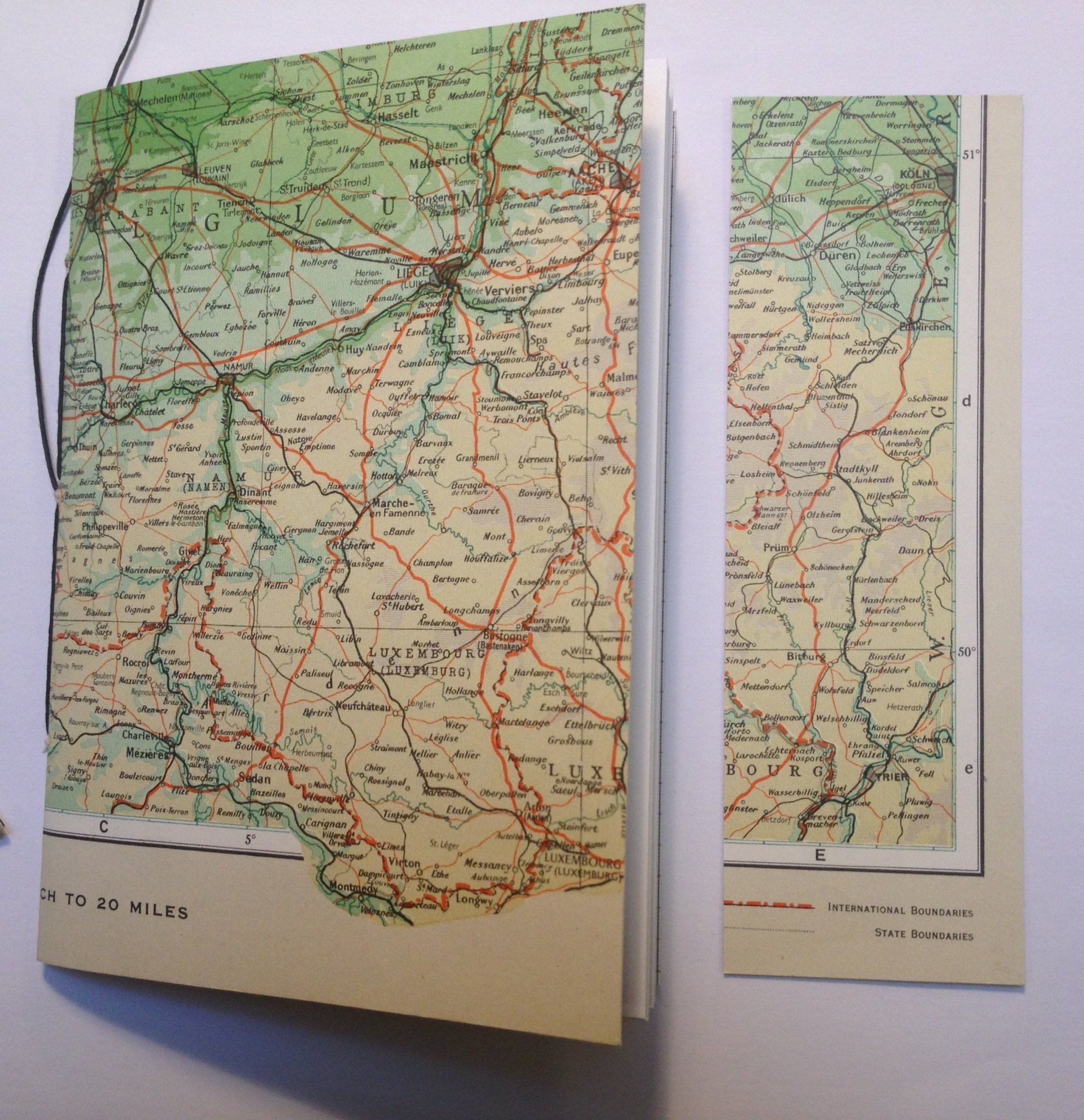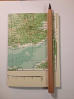 Small handmade notebooks with a vintage map as the cover. These notebooks contain artist quality cartridge paper, central contemporary graph paper insert and a vintage map book mark that fits neatly inside. Each book measures approximately 14.5 cm x 10.5cm and is hand stitched with a waxed thread that is long enough to wrap around the book and tie off. Each notebook is made to order so please allow a little extra time for your purchase to arrive.
