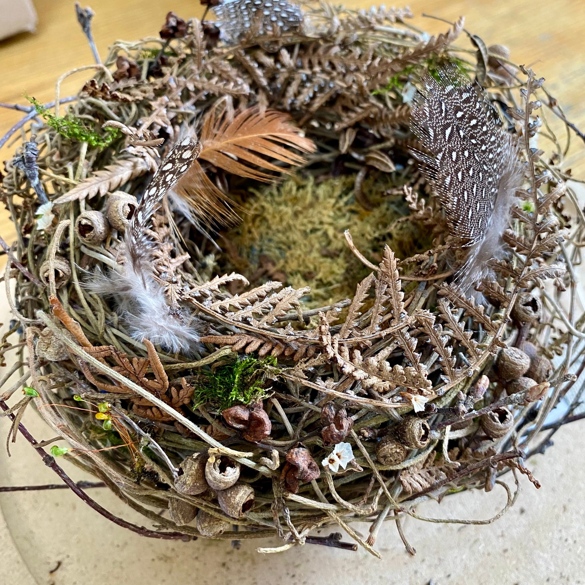 This sweet little handmade nest fits in the palm of your hand. Approximately 10cm diameter at the top, it is made from foraged vine, fern, moss, berries and tiny feathers. Constructed using all natural materials it would make a beautiful addition to a nature table, popped onto a decorative branch, sitting under a glass dome, nestled into a collection of natural materials, as a gift to celebrate a new baby or as a perfect addition for the nature collector. More tiny nests will be added from time to time.